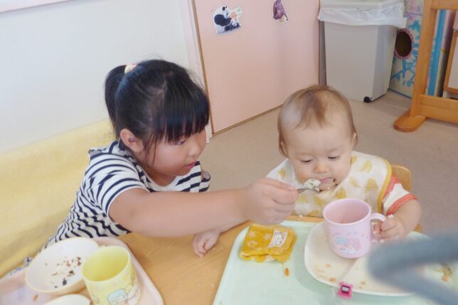 3歳以上児の給食はセミバイキング方式で行います。(自分で食べられる適切な量をきちんと言葉で伝える・自分で決めた量を食べきることで達成感をもつことを大事にしています)