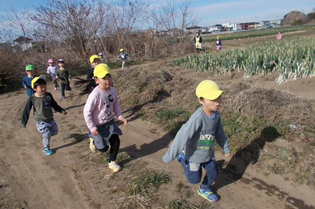 広い園庭や、近隣の公園、多様なお散歩コースなど子どもたちの身体的な発達に応じた遊びが出来るよう配慮しています。