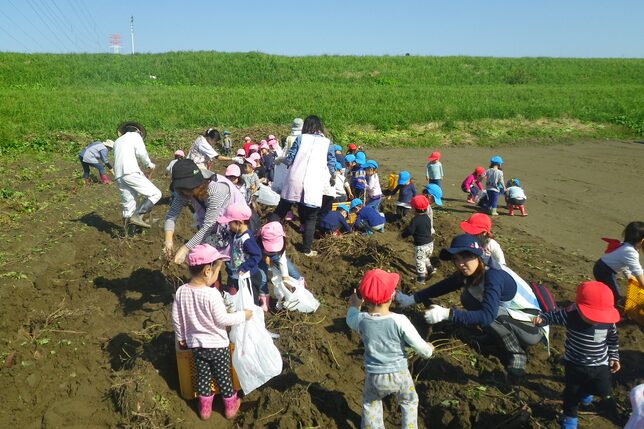 - 10月 運動会 さつまいも掘り 稲刈り・脱穀(5歳児)