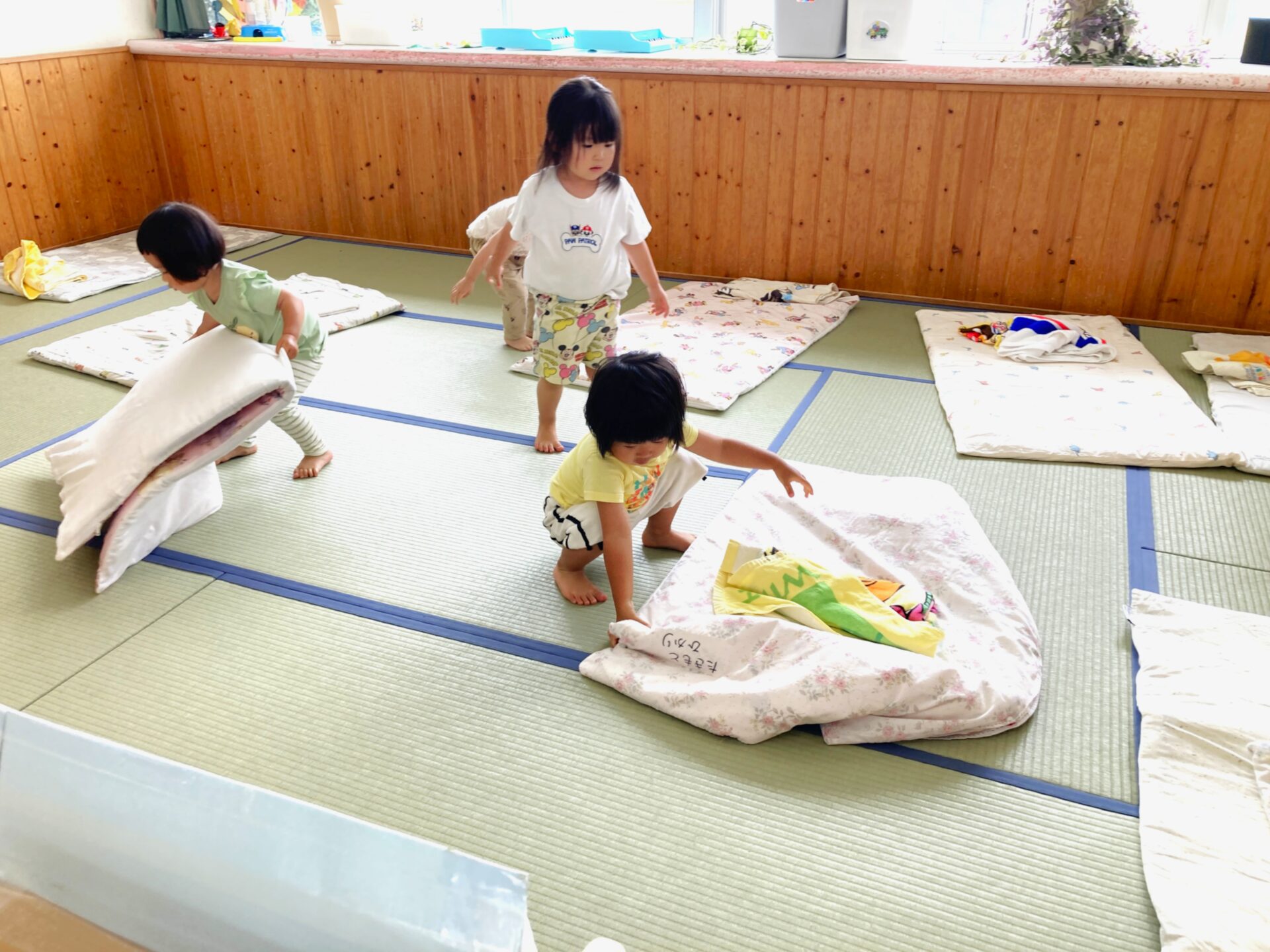 空間が分かれていることで、子どもは次に何をするのかを自然と理解し、自分で行動を切り替えられるようになります。 落ち着いた生活リズムの中で、安心して園生活を送れることを大切にしています。