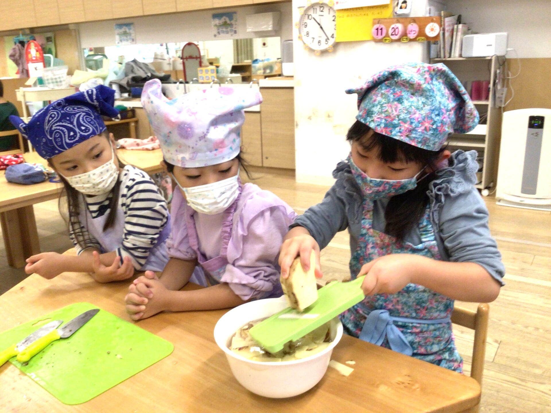 また、園内の畑や田んぼで野菜を育て、収穫し、調理し、食べるという流れを、日常の中で体験します。 食を通して、主体性や感謝の気持ち、生活そのものへの関心を育てていきます。