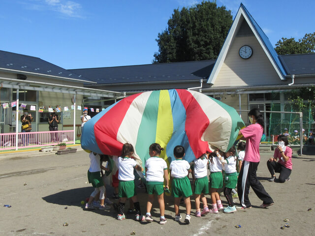 みどり保育園は、にぎやかで活気のある雰囲気が特徴です。子どもたちの声が行き交う中で、 毎日いきいきとした園生活が営まれています。